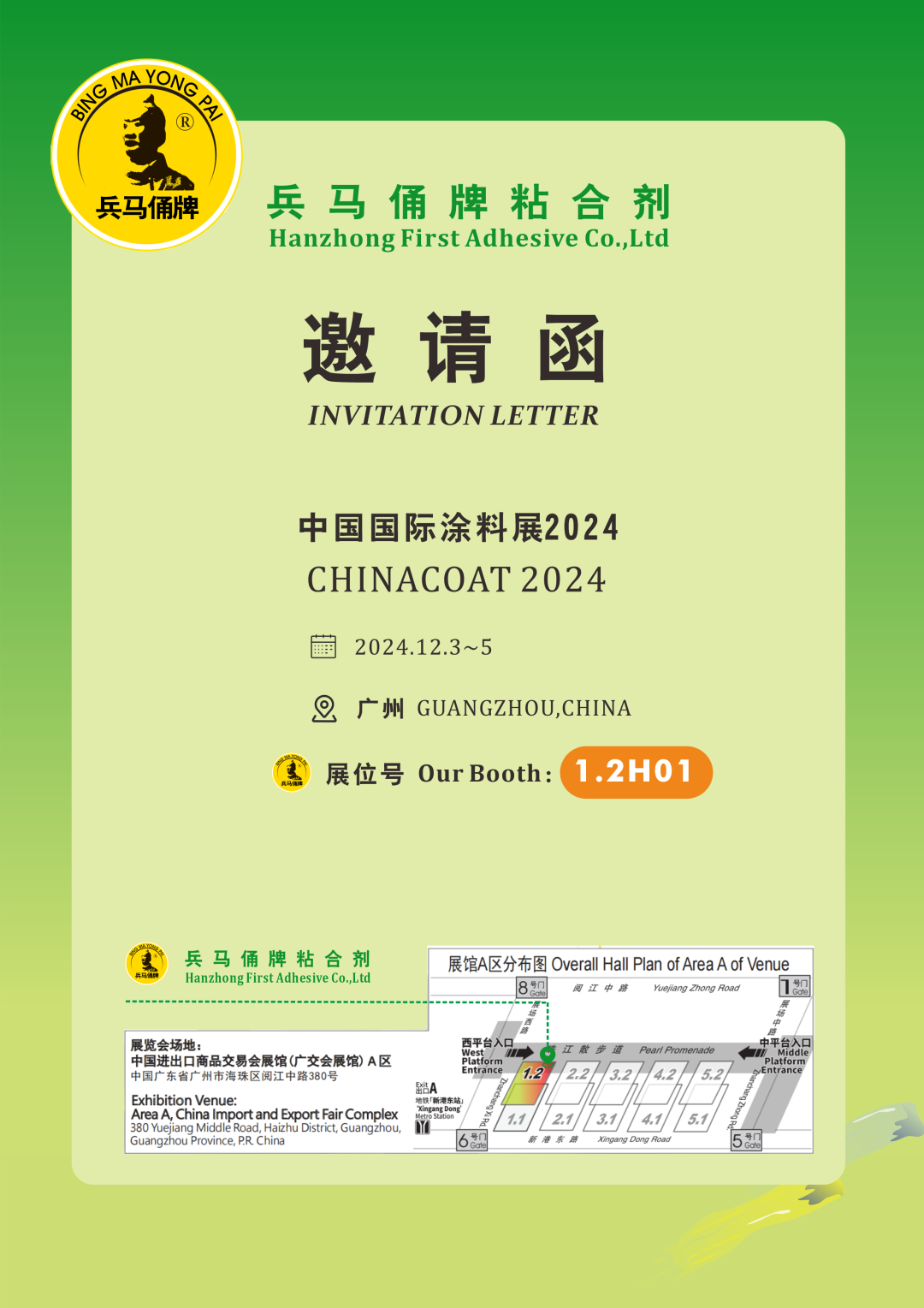 兵马俑牌粘合剂诚邀您莅临2024中国国际涂料展 ▎展位号1.2H01,我们广州见!